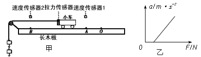 5、实验题 用拉力传感器和速度传感器“探究加速度a与物体合外力F的关系”的实验装置示意图如图甲所示。实验中用拉力传感器记录小车受到细线的拉力F大小,在长木板上相距为L的A、B两个位置分别安装速度传感器1和2,记录小车到达A、B两位置时的速率为vA、vB。