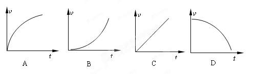1、选择题 一个物体静止在光滑地面上,某时刻起受到一个逐渐增大的水平力F作用,下面能反映物体速度—时间图像的是(? )