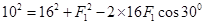 1、填空题 如图所示,今将力F=16N进行分解,其中一个分力F1的方向与F的夹角为30°,则另一个分力F2的大小至少为_________N,若分力F2大小为10N,则F1的大小为________N或________N