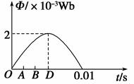 5、选择题  单匝矩形线圈在匀强磁场中匀速运动,转轴垂直于磁场,若线圈所围面积里磁通量随时间变化的规律如图所示,则O~D过程中(  )