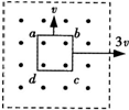 3、选择题 如图所示,垂直纸面的正方形匀强磁场区域内,有一位于纸面的、电阻均匀的正方形导体框abcd,现将导体框分别朝两个方向以v、3v速度匀速拉出磁场,则导体框从两个方向移出磁场的两个过程中( )