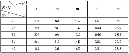(1)请写出由上述数据得出的汽车风阻Ff与汽车正面投影面积S及汽车行驶的速度