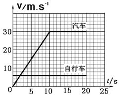 ⑶试在右图的坐标中,作出此过程汽车和自行车的速度-时间图象.