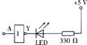 5、选择题 可以用型号为741S14的非门集成电路、发光二极管和限流电阻来组成一个逻辑电平检测器,电路如图所示,使用时,将检测器的输入端A接到被测点.下列说法正确的是 |