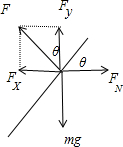 ![]() 参考答案:小球必定受到重力和绳的拉力. 本题解析: 本题难度:一般 4、填空题 如图所示,重力为40 N的物体与竖直墙壁间的动摩擦因数μ=0.4,若用斜向上F=50 N的推力托住物体,使物体处于平衡状态,这时物体受到的摩擦力是______;要使物体匀速下滑,推力F的大小应变为______.(sin37°=0.6,cos37°=0.8) 参考答案:?10 N???43.5 N? 本题解析:物体处于平衡状态,竖直方向的平衡方程为 本题难度:简单 5、填空题 如图所示的两架直升飞机在某一高度水平向前飞行,其中一架飞机在加速前进,另一架飞机在减速前进,则图______所示的飞机在加速前进,图______所示的飞机在减速前进. 参考答案:A图空气对飞机的作用力斜向右上,和重力的合力方向向前,与速度同向,则飞机做加速前进.B图中空气对飞机的作用力斜向左上,和重力的合力方向向后,与速度方向相反,做减速前进. 本题解析: 本题难度:一般 |