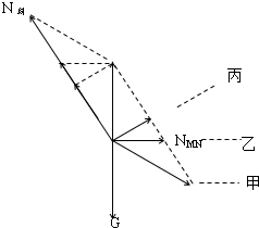 将甲、乙、丙三种情况小球的受力图作出一幅图上,如图,根据平衡条件得知,丁图中斜面对小球的弹力为零,挡板对小球的弹力等于其重力G.