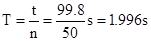 2×0.1mm=0.2mm=0.02cm,游标卡尺示数是1.5cm+0.02cm=1.52cm;由秒表读出时间t=99.8s,则单摆的周期为