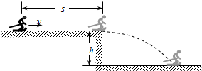 2、简答题 在冬天,高为h=1.25m的平台上,覆盖了一层冰,一乘雪橇的滑雪爱好者,从距平台边缘s=24m处以5m/s的初速度向平台边缘匀速滑去,如图所示,不计空气阻力,取重力加速度g=10m/s2.求:
