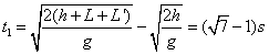 A下落到D点(自由下落h+L+L")的时间:t2=