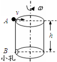 2、简答题 如图,横截面半径为R的转筒,转筒顶端有一A点,其正下方有一小孔B,距顶端h=0.8m,开始时,转筒的轴线与A点、小孔B三者在同一竖直面内.现使一小球自A点以速度v=4m/s朝转筒轴线水平抛出,同时转筒立刻以某一角速度匀速转动起来,且小球最终正好穿出小孔.不计空气阻力,g取l0m/s2,求: