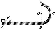 ![]() 4、简答题 如图,水平地面AB=10.0m。BCD是半径为R=0.9m的光滑半圆轨道,O是圆心,DOB在同一竖直线上。一个质量m=1.0kg的物体静止在A点。现用F=10N的水平恒力作用在物体上,使物体从静止开始做匀加速直线运动。物体与水平地面间的动摩擦因数μ=0.5。当物体运动到B点时撤去F。之后物体沿BCD轨道运动,离开最高点D后落到地上的P点(图中未画出)。G取10m/s2。求: 5、简答题 |