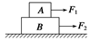 4、选择题 如图所示,质量相等的两物体A、B叠放在粗糙的水平面上,A与B接触面光滑.A受水平恒力F1,B受水平恒力F2,F1与F2方向都向右,且F2>F1。若物体A和B保持相对静止,则物体B受到的摩擦力大小和方向应为?(? )?