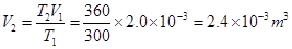 5、计算题 (6分)如图所示,导热良好的薄壁汽缸放在光滑水平面上,用横截面积为S=1.0×10-2m2的光滑活塞将一定质量的理想气体封闭在汽缸内,活塞杆的另一端固定在墙上。外界大气压强P0=1.0×l05Pa。当环境温度为27oC时,密闭气体的体积为2.0×10-3 m3。