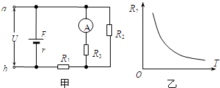 3、选择题  如图甲所示,是一火警报警器的部分电路示意图.其中R2是由半导体热敏材料制成的传感器,其电阻R2随温度T变化的曲线如图乙所示.电流表为值班室的显示器,a、b之间接报警器.当传感器R2所在的位置出现火情时,显示器的电流I、报警器两端的电压U的变化情况是(  )