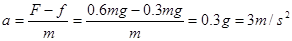 5、计算题 .一辆汽车在十字路口等候绿灯,当绿灯亮时汽车开始匀加速行驶,汽车的牵引力保持为车重的0.6倍,汽车行驶时所受阻力为车重的0.3倍,恰在这时一辆自行车以6m/s的速度匀速从后面超过汽车,则: