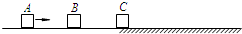 4、简答题 如图所示,三个可视为质点的物块A、B、C,在水平面上排成一条直线,且彼此间隔一定距离.已知mA=mB=10kg,mC=20kg,C的静止位置左侧水平面光滑,右侧水平面粗糙,A、B与粗糙水平面间的动摩擦因数μA=μB=0.4,C与粗糙水平面间动摩擦因数μC=0.2,A具有20J的初动能向右运动,与静止的B发生碰撞后粘在一起,又与静止的C发生碰撞,最后A、B、C粘成一个整体,g=10m/s2,求: