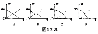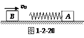5、选择题 如图1-2-20所示,在足够大的光滑水平面上放有两个质量相等的物块,其中物块A连接一个轻弹簧并处于静止状态,物块B以初速度