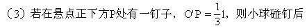 [说明] 第(3)小题中的钉子在竖直线上不同位置时,对小球的运动是有影响的.当钉子位于水平线AB上方时,小球碰钉后总能摆到跟AB同一高度处.若钉子继续下移,碰钉后的运动较为复杂,有兴趣的读者可自行研究.