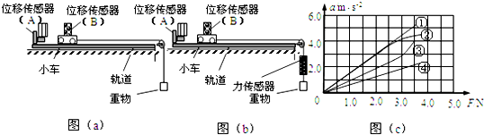 2、简答题 在“用DIS研究小车加速度与所受合外力的关系”实验中时,甲、乙两组分别用如图(a)、(b)所示的实验装置实验,重物通过细线跨过滑轮拉相同质量小车,位移传感器(B)随小车一起沿水平轨道运动,位移传感器(A)固定在轨道一端.甲组实验中把重物的重力作为拉力F,乙组直接用力传感器测得拉力F,改变重物的重力重复实验多次,记录多组数据,并画出a-F图象.