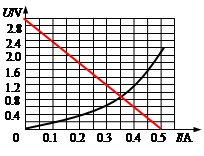 (3)当滑片滑到变阻器中点时,小灯泡可能获得的功率最小,此进滑动变阻器接入电路的等效电阻为5Ω,将此时变阻器看作电源内阻一部分,电源内阻将为6Ω,在图中画出电源U-I图象,如图所示,小灯泡此进的功率为