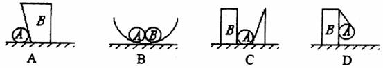 4、选择题 如图所示,各接触面是光滑的,则A、B间可能无弹力作用的是(? )