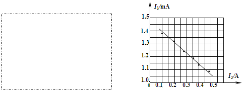 (2)在测定一节干电池的电动势和内电阻的实验中,备有下列器材: A.干电池E(电动势约为1.5V、内电阻大约为1.0Ω) B.电压表V(0~15V) C.电流表A(0~0.6A、内阻0.1Ω)? D.电流表G(满偏电流3mA、内阻Rg=10Ω) E?滑动变阻器R1(0~10Ω、10A)? ?F.滑动变阻器R2(0~100Ω、1A) G.定值电阻R3=990Ω?H.开关、导线若干 ①为了方便且能较准确地进行测量,其中应选用的滑动变阻器是______(填写字母代号) ②请在线框内画出你所设计的实验电路图,并在图中标上所选用器材的符号. ③上图为某一同学根据他设计的实验,绘出的I1-I2图线(I1为电流表G的示数,I2为电流表A的示数),由图线可求得被测电池的电动势E=______V,内电阻r=______Ω.