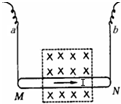 1、简答题 如图所示,一根长度为2米金属棒MN,质量2kg,两端用细软导线连接后悬挂于a、b两点.棒的中部处于方向垂直纸面向里的B=0.8T匀强磁场中,让金属棒中通以I=10A的电流,方向从M流向N.