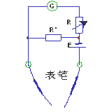 (2)在图1电路的基础上,不换微安表和电池,图2的刻度也不改变,仅增加1个电阻,就能改装成“R×1”的欧姆表。要增加的电阻应接在________之间 (填a、b、c),规格为 。(保留两位有效数字) (3)画出改装成“R×1”的欧姆表后的电路图。 参考答案:(1)1kΩ;(2)a、c,15Ω (3)如图 本题解析:(1)根据“使用中发现这个欧姆表用来测量阻值在10kΩ—20kΩ范围内的电阻时精确度令人满意。”说明在测阻值在10kΩ—20kΩ的电阻时欧姆表的指针在刻度盘的中间附近,由此可结合刻度盘确定此表的中值电阻,即表内总电阻约为R总=15kΩ。(相当于欧姆表选择量程于×1 k 挡)。当表笔短接时,电流满偏,根据欧姆定律有: 本题难度:一般 2、选择题 如图为某磁场中的磁感线.则 ? 参考答案:BD 本题解析:试题分析:磁感线的疏密程度表示磁感强度大小,由此可知Ba>Bb,B对;安培力的大小除了与B、I、L的大小有关,还与导体棒的角度有关,C错D对; 本题难度:简单 3、选择题 下列物理量中属于标量的是 参考答案:A 本题解析:即有大小又有方向,相加时遵循平行四边形定则的物理量是矢量,如力、速度、加速度、位移、动量等都是矢量;只有大小,没有方向的物理量是标量,如路程、时间、质量等都是标量,理解标量和矢量的区别即可正确解答本题. 本题难度:困难 4、实验题 如图所示,电流表的读数为 螺旋测微器的读数为_______mm。游标卡尺的读数为___ cm. 参考答案:0.304~0.308A 0.900 3.310 本题解析:由图知电流表所选量程为0.6A,则读数为:0.304~0.308A; 本题难度:一般 5、选择题 某正弦式交流电的电流i随时间t变化的图象如图所示。由图可知 参考答案:B 本题解析:由图象知 本题难度:简单 |