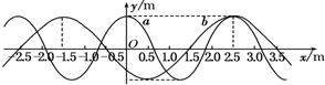 5、简答题 有两列简谐横波a、b在同一媒质中沿x轴正方向传播,波速均为v=2.5m/s.在t=0时,两列波的波峰正好在x=2.5m处重合(如图).那么两