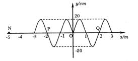 本题解析:根据对称性可知,此时P(-2m,0cm)、Q(2m,0cm)两点运动方向相同.故A错误.由图知波长λ=2m,周期为