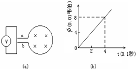 4、选择题 图中甲图所示的线圈为5匝,其端点a,b与电压表相连,线圈内磁通量变化规律如(b)图所示,则a,b两点的电势高低及电压表读数为( )