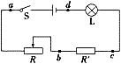 ![]() 参考答案:a环与b环的半径之比为1:2,故周长之比为1:2,根据电阻定律R=ρLS,电阻之比为1:2; 本题解析: 本题难度:简单 4、选择题 如图所示,在研究电源电动势与内、外电压关系的实验装置中,玻璃容器盛有稀硫酸,稀硫酸中插入石墨棒M、锌棒N作为电源的两极。A、B是位于两电极内侧的探针,理想电压表V1、V2分别接在电源的两极和探针上,下列说法正确的是?(?) 参考答案:AD 本题解析:稀硫酸和锌棒产生反应,锌棒失去电子,电子向碳棒流动,所以M是正极,N是负极,电源内部电流是从负极流向正极的,所以电压表V2的正接线柱应与探针B相连,A正确,电压表V1测量路端电压,电压表V2分测内电压,所以当滑动变阻器触头向左移动时,外电路电阻增大,根据闭合回路欧姆定律可得,电压表V1示数增大,V2的示数减小,B错误,电路总电流减小,所以根据公式 本题难度:一般 5、选择题 用电压表检查如图电路中的故障,S闭合后,测得Uad=5.0 V,Ucd=0 V,Ubc=0 V,Uab=5.0 V,则此故障可能是(?) 参考答案:B 本题解析:串联电路中灯L不发光,则可能是某处断路,电压表测断路位置为电源电压,测不断的位置电压为零,由题意可知,测得 本题难度:一般 |