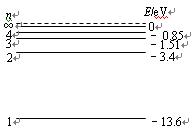 5、计算题 (选修3-5选做题) 实验室考查氢原子跃迁时的微观效应。已知氢原子能级图如图所示,氢原子质量为 。设原来处于静止状态的大量激发态氢原子处于n=5的能级状态。 (1)求氢原子由高能级向低能级跃迁时,可能发射出多少种不同频率的光; (2)若跃迁后光子沿某一方向飞出,且光子的动量可以用 表示a为普朗克常量,v为光子频率,c为真空中光速),求发生电子跃迁后氢原子的最大反冲速率。(保留三位有效数字)