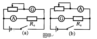 小题1:某同学发现上述器材中虽然没有电压表,但给出了两个电流表,于是他设计了如图所示中甲的(a)、 (b)两个参考实验电路,其中合理的是? 图所示的电路;在该电路中,为了操作方便且能准确地进行测量,滑动变阻器应选? ?(填写器材前的字母代号)
