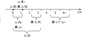 (1)1s内,(2)第1s,(3)1s初,(4)1s末,(5)第2s初,(6)第3s内,(7)3s内,(8)第3个2s 参考答案: 本题解析:时间对应“一段”,时刻对应“点”,所以可得下图所示 本题难度:简单 5、选择题 以下有关时间的概念,属于时刻的是( ) 参考答案:A、做一天和尚,撞一天钟,一天指时间,故A错误. 本题解析: 本题难度:简单 |