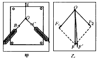 2、实验题 在“探究力的平行四边形定则”的实验中,用图钉把橡皮条的一端固定在板上的A点,在橡皮条的另一端拴上两条细绳,细绳另一端系着绳套B、C(用来连接弹簧测力计)。其中A为固定橡皮筋的图钉,O为橡皮筋与细绳的结点,OB和OC为细绳。