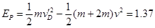 本题解析:(1)①设小物块P在B、D两位置受轨道弹力大小分别为NB、ND,速度大小分别为vB、vD。 根据牛顿第三定律可知 小物块P通过B位置时,根据牛顿第二定律有 解得:vB=4.0m/s ②小物块P从M到B所损失的机械能为:ΔE1=μmgxMB=0.10J 小物块P通过D位置时,根据牛顿第二定律有 解得:vD=2.0m/s 小物块P由B位置运动到D位置的过程中,克服摩擦力做功为Wf, 根据动能定理有- 解得: Wf=0.40J 小物块P从B至D的过程中所损失的机械能ΔE2=0.40J 小物块P从M点运动到轨道最高点D的过程中所损失的机械能ΔE=0.50J (2)在轨道各处均光滑的情况下,设小物块P运动至B、D位置速度大小分别为vB′、vD′。 根据机械能守恒定律有: 解得:vD′=4.0m/s 小物块P向小物块Q运动,将压缩弹簧,当弹簧的压缩量x=F/k时,小物块Q恰好解除锁定。设小物块P以vx速度大小开始压缩弹簧,当其动能减为零时,刚好使小物块Q解除锁定。 根据能量守恒有  解得:vx=3.0m/s 由于vD′>vx,因此小物块Q被解除锁定后,小物块P的速度不为零,设其速度大小为 , 根据能量守恒有  解得:vP= m/s 当小物块Q解除锁定后,P、Q以及弹簧组成的系统动量守恒,当两者速度相等时,弹簧的压缩量最大。 根据动量守恒定律有: 弹簧的最大弹性势能 J 考点:动量守恒定律;能量守恒;牛顿第二定律。