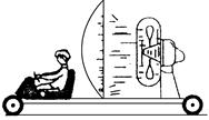 2、选择题 有人设计了一种交通工具,如图2所示,在平板车上装了一个电风扇,风扇转动时吹出 的风全部打到竖直固定在小车中间的风帆上,靠风帆受力而向前运动.对这种设计,下列分析中正确的是?