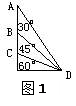 2、选择题 如图1所示,AD、BD、CD都是光滑的直角斜面,斜面固定在水平地面上,现使一小物体分别从A、B、C点由静止开始下滑到D点,所用时间分别为t1、t2、t3,