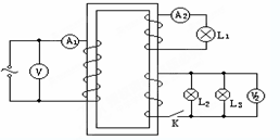 ![]() 2、填空题 图示电路中,R1=12 3、选择题 关于电动势,下列说法正确的是? 4、填空题 (4分)如图所示,理想变压器的次级有两组线圈,图中三个灯泡的规格相同,四个电表对电路的影响都可忽略不计。开关K断开时,灯L1正常发光,这时两电流表示数之比I1:I2是1:4;开关K闭合时,三个灯都正常发光,这时两电流表示数之比 5、选择题 在如图所示的电路中,灯泡L的电阻大于电源的内阻r,闭合电键S,将滑动变阻器滑片P向左移动一段距离后,下列结论正确的是 |