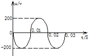 ![]() 参考答案:A、从电动势的表达式知道:角速度ω=100π,周期为T=2πω=0.02s,故A正确; 本题解析: 本题难度:简单 2、填空题 某交变电流的电压随时间的变化规律如图所示,则此交变电流的频率为______,如将该电压加在10μF的电容器上,则电容器的耐压值不应小于______.如将该电压加在一阻值为1kΩ的纯电阻用电器上,用电器恰能正常工作,为避意外,该电路中保险丝的额定电流不能低于______,如将该电压加在辉光电压为100V的氖管上,则每分钟内氖管发光时间为______. 参考答案:由图可知该交流电的周期T=0.02s,则频率f=1T=50Hz; 本题解析: 本题难度:一般 3、选择题 关于交变电流的有效值U和最大值Um,下列说法正确的是( )