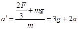 3、填空题 如图所示,用细绳拉着小球A向上做加速运动,小球A、B间用弹簧相连,二球的质量分别为m和2m,加速度的大小为a,若拉力F突然撤去,则A、B两球的加速度分别是___?___ 和_?_____.