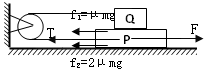 对P受力分析:Q对P产生向左的摩擦力f1,绳子对P产生向左的拉力T,地面对P产生向左的摩擦力f2,则有:
