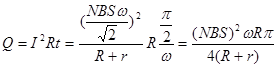 D.电阻R产生的焦耳热Q= (NBS)2ωRπ/4(R+r)2