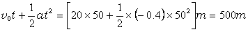 小汽车关闭发动机通过的位移大小: