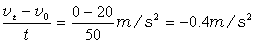 2、计算题 某质量为1100kg的小汽车在平直路面试车,当达到20m/s的速度时关闭发动机,经过50s停下来。求:(附:你可能需要用到的数据g=10m/s2)