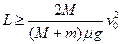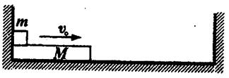 3、计算题 (19分)如图所示,在光滑的水平面上固定有左、右两竖直挡板,挡板间距离足够长,有一质量为M,长为L的长木板靠在左侧挡板处,另有一质量为m的小物块(可视为质点),放置在长木板的左端,已知小物块与长木板间的动摩擦因数为