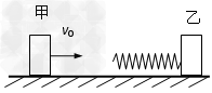 2、计算题 如图所示,光滑水平面上停着一个质量为M的木块乙,乙上固定着一轻质弹簧,另一个质量为m的木块以速度为v0向右运动,求弹簧在压缩过程中所具有的最大弹性势能(设压缩量在弹性限度内)。