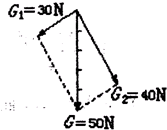 参考答案:A 本题解析:当拉力为F时,F在水平方向上的分力大小为 本题难度:一般 3、简答题 如图所示,斜面上的物体所受重力为50牛顿,求重力沿斜面下滑方向和沿与斜面垂直方向的分力. 参考答案: 本题解析: 本题难度:一般 4、计算题 如图所示,在一条小河中有一条小船,船受到一个与河岸成30°角的拉力F=1000 N的作用。要使船沿与河岸平行的方向前进,需要另加一个力的作用,则这个力向什么方向最省力?该力的大小为多少? 参考答案:解:若使船沿平行河岸方向前进,所加力与原力F的合力方向应平行于河岸,这有无数种情况,如图所示画出了其中的三种 本题解析: 本题难度:一般 5、计算题 如下图,用绳AC和BC吊起一个重50 N的物体(用质点代替),两绳AC、BC与竖直方向的夹角分别为30°和45°,求:绳AC和BC对物体的拉力。 参考答案:解:以C为原点建立直角坐标系,设x轴水平,y轴竖直,在图上标出FAC和FBC在x轴和y轴上的分力,即: 本题解析: 本题难度:一般 |