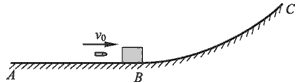 ![]() ![]() ![]() ①铜块和长木板的动摩擦因数μ。 ②铜块的最终速度。? 2、计算题 如图所示,一质量为0.99kg的木块静止在水平轨道AB的B端,水平轨道与半径为10m的光滑弧形轨道BC相切。现有一质量为10g的子弹以500m/s的水平速度从左边射入木块且未穿出。已知木块与水平轨道的动摩擦因数μ=0.5,g=10m/s2。求: 3、选择题 物体在恒定的合力F作用下,做直线运动,在时间△t1内速度由O增大到v,在时间△t2内速度同v增大到2v,设F在△t1内做功是W1,冲量是I1,在△t2内做的功是W2,冲量是I2,那么( ) 4、简答题 一根轻且不可伸长细线穿过转轴水平固定的光滑定滑轮,线的两端各系一个质量均为M的同样物体,其中一个物体的侧面爬有质量为m的蟑螂。开始维持两物体不动,并且爬有蟑螂的物体比另一物体高H。放开两物体,当它们并排时,蟑螂垂直于所在物的侧面轻轻跳开,并抓住向上运动的第二个物体。求: 5、选择题 如图所示,在光滑水平面上放置A、B两物体,其中B物体带有不计质量的弹簧静止在水平面内。A物体质量为m,以速度v0逼近B,并压缩弹簧,在压缩的过程中(?) |